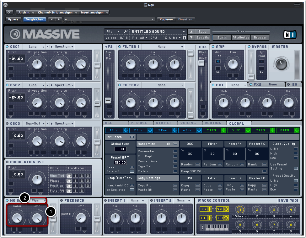 Als Noise-Signal wählen wir “Water Pipes” (2).