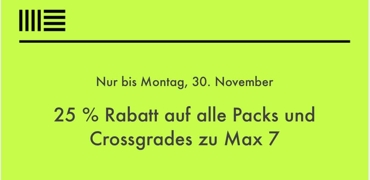 Jetzt ist die perfekte Gelegenheit, um Ihr Studio mit inspirierenden Sounds, Instrumenten, Effekten und Anwendungen für Live zu erweitern. Ab sofort und nur bis 30. November erhalten Sie alle Packs von Ableton 25 % günstiger. Sie können das Angebot auch nutzen, um beim Crossgrade zu Max 7 deutlich zu sparen.