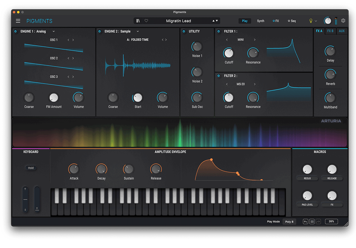 Arturia ist insbesondere bekannt für Emulationen zahlreicher ikonischer Hardware-Synthesizer. Dazu zählen beispielsweise CS-80 V, Prophet V oder Mini V – eine digitale Version des legendären Minimoogs. Seit Jahren arbeitet Arturia eng mit Pionieren wie Dr. Robert Moog oder Cameron Jones zusammen. Im Jahr 2012 veröffentlichte Arturia seinen ersten Analog-Synthesizer: den MiniBrute. Insofern ist Pigments nicht unbedingt ein typisches Instrument, das man von einem Hersteller wie Arturia erwartet.