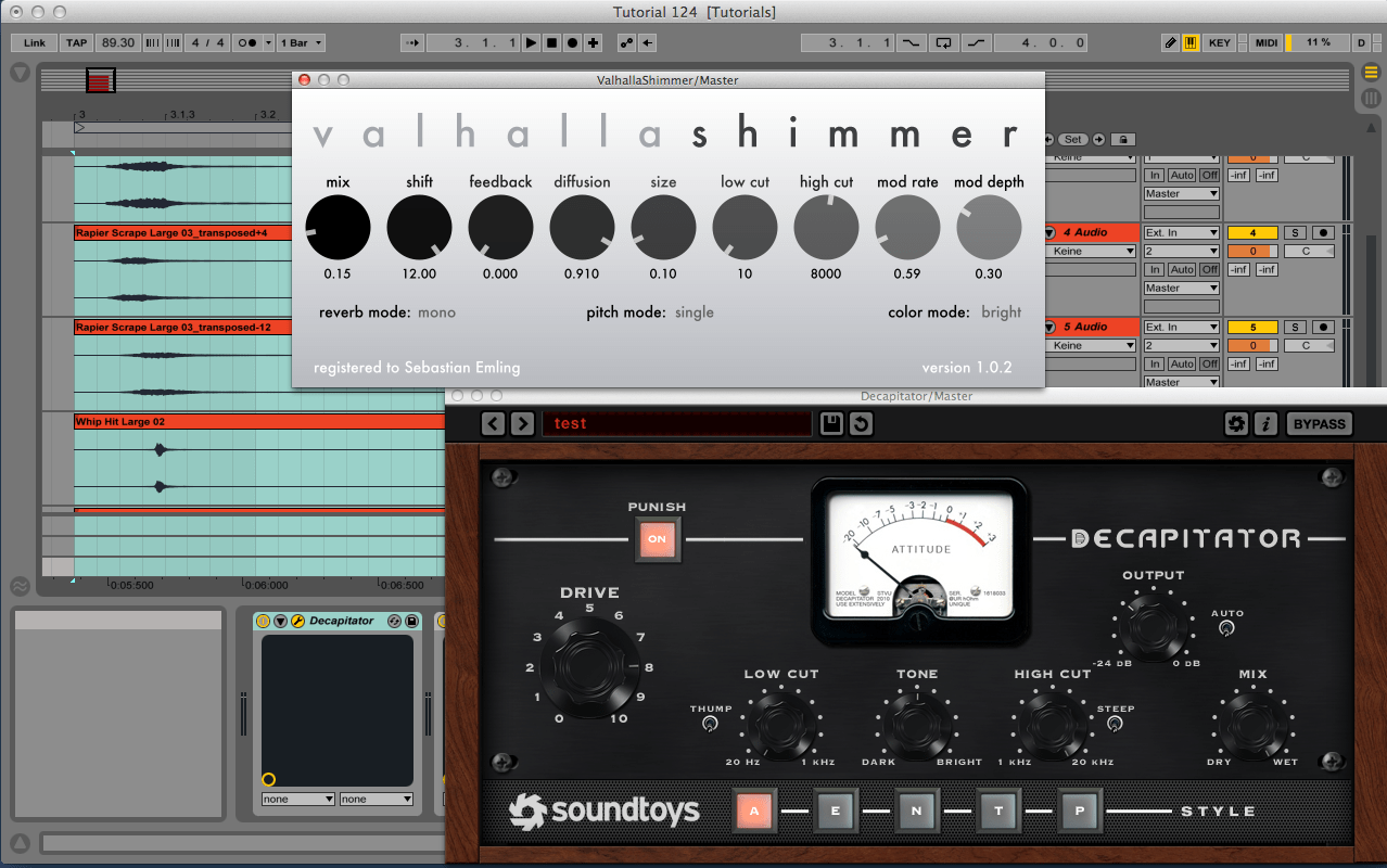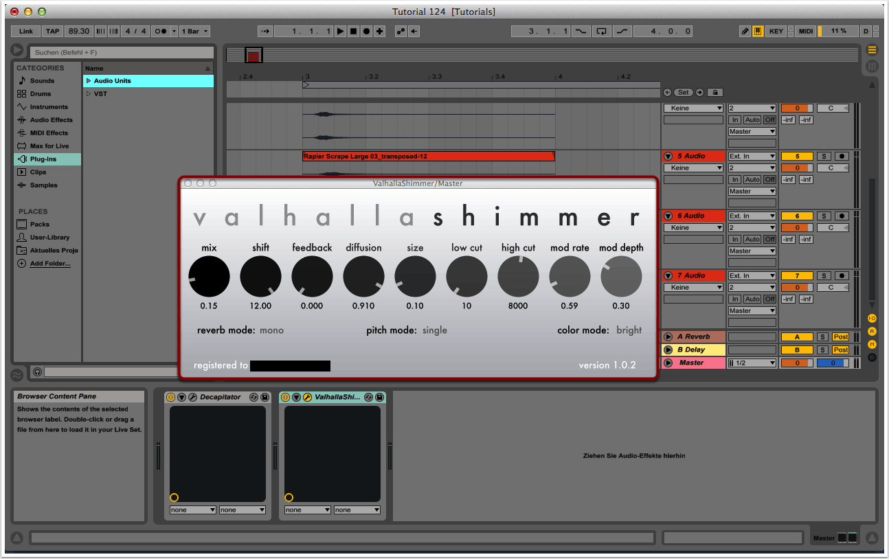 Um unsere Sword-SFX epischer wirken zu lassen, fügen wir als nächstes einen Reverb-Effekt auf der Master-Spur hinzu. Hierfür haben wir uns für ValhallaShimmer von ValhallaDSP entschieden.