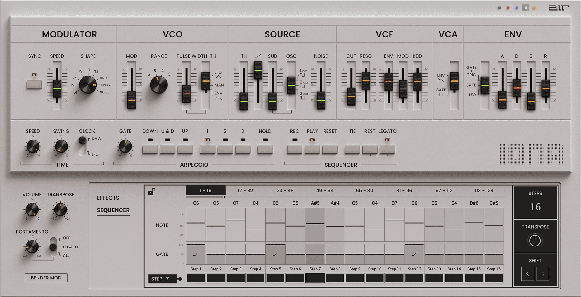 IONA ist ein virtuelles Instrument von AIR Music Tech, das den legendären Roland SH-101 in digitaler Form wieder aufleben lässt. Das Plug-in bietet nicht nur den charakteristischen Sound des Originals, sondern erweitert diesen um moderne Features wie einen 128-Step-Pattern-Sequenzer und eine intuitive grafische Bearbeitung. Egal, ob du auf einem MPC skizzierst oder deinen Track in einer DAW fertigstellst, IONA liefert überall denselben klassischen 101-Sound.