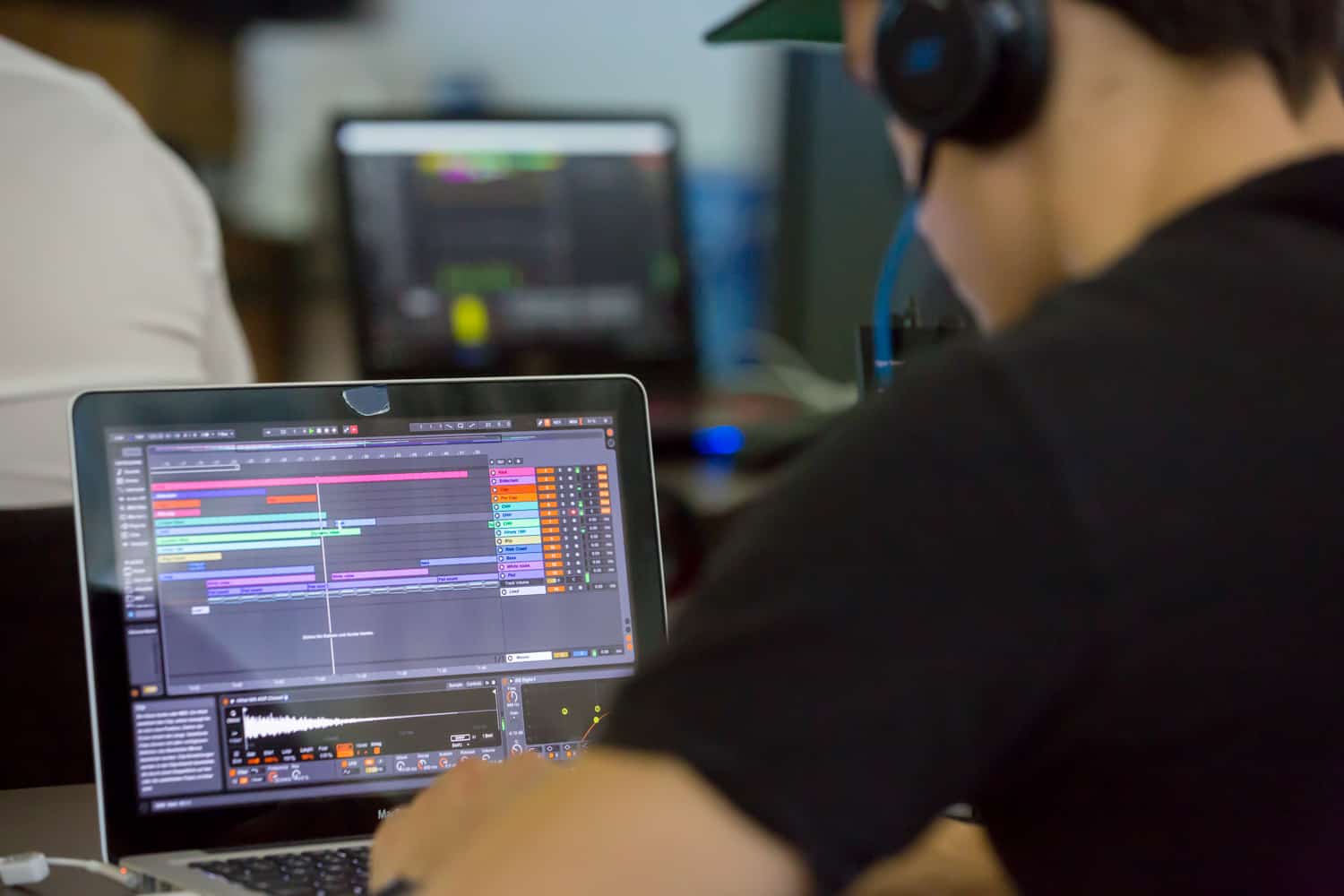 - Spiele und programmiere in Ableton oder mit dem Ableton Push Drums, Basslines und Akkorde.