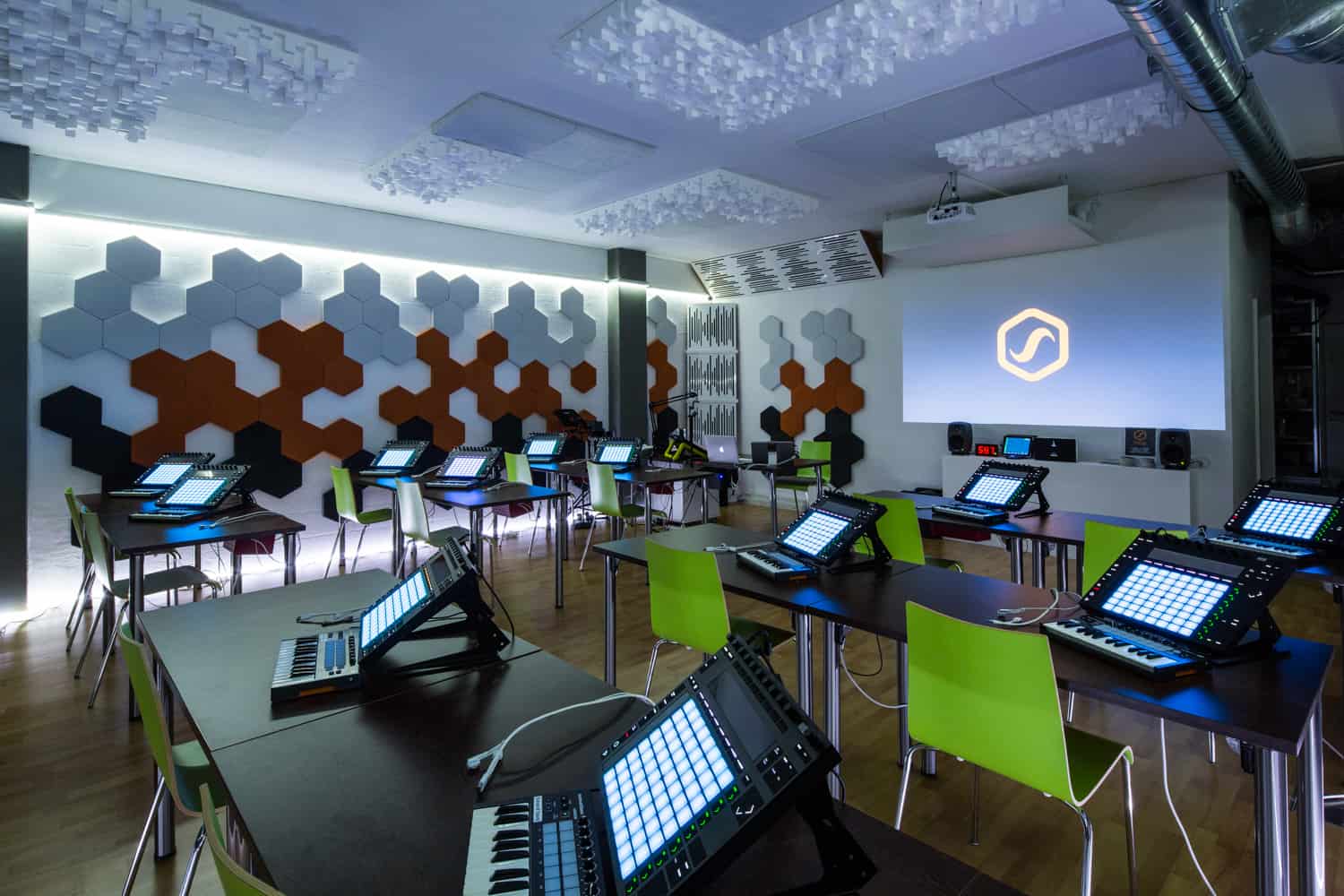 - Classroom: Fix eingerichtete Arbeitsplätze mit Ableton Push 3 und Keyboards