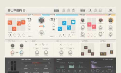 Inspiriert von legendären Analogsynthesizern der 70er und 80er Jahre führt uns Native Instruments mit Super 8 zurück in ikonische Klangwelten vergangener Zeiten. Super 8 ist ein virtuell-analoger, achtstimmiger Polysynth. Unter der Haube stecken Dual-Oszillatoren, die mit jeweils vier unabhängigen Wellenformen ausgerüstet sind. Die Oszillatoren lassen sich synchronisieren, es kann aber auch wahlweise ihr Mischverhältnis bestimmt […]