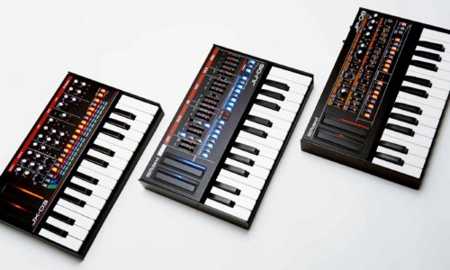Kaum größer als ein Buch sind die drei neuen Miniaturmodelle von Roland, die sich als moderne Nachbildungen der Legendären Synthesizer JUPITER-8, JX-3P und Juno-106 verstehen.