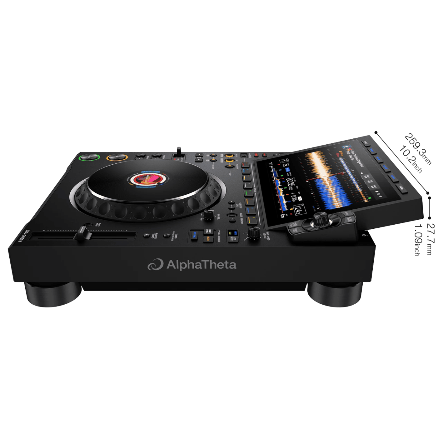 Dank leistungsstarkem Prozessor reagiert das System extrem schnell und sorgt für ein absolut stabiles, flüssiges Mixing – auch bei komplexen Sets. - Das hochauflösende 9-Zoll-Touchdisplay ermöglicht eine präzise Navigation durch Playlists, Wellenformen und Hot Cues.