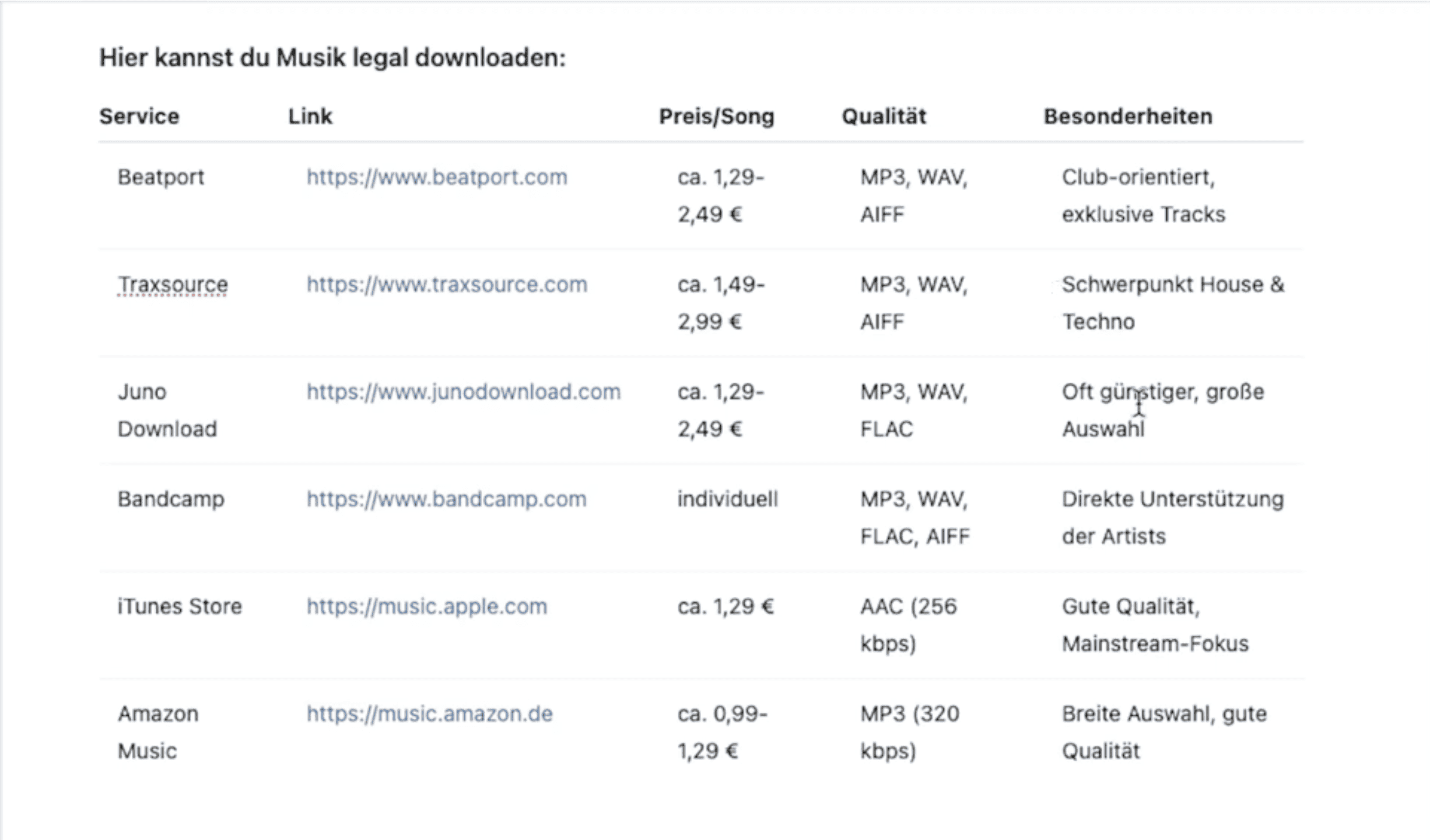 Mainstream-Plattform mit etwas günstigeren Preisen – allerdings im AAC-Format (komprimiert).