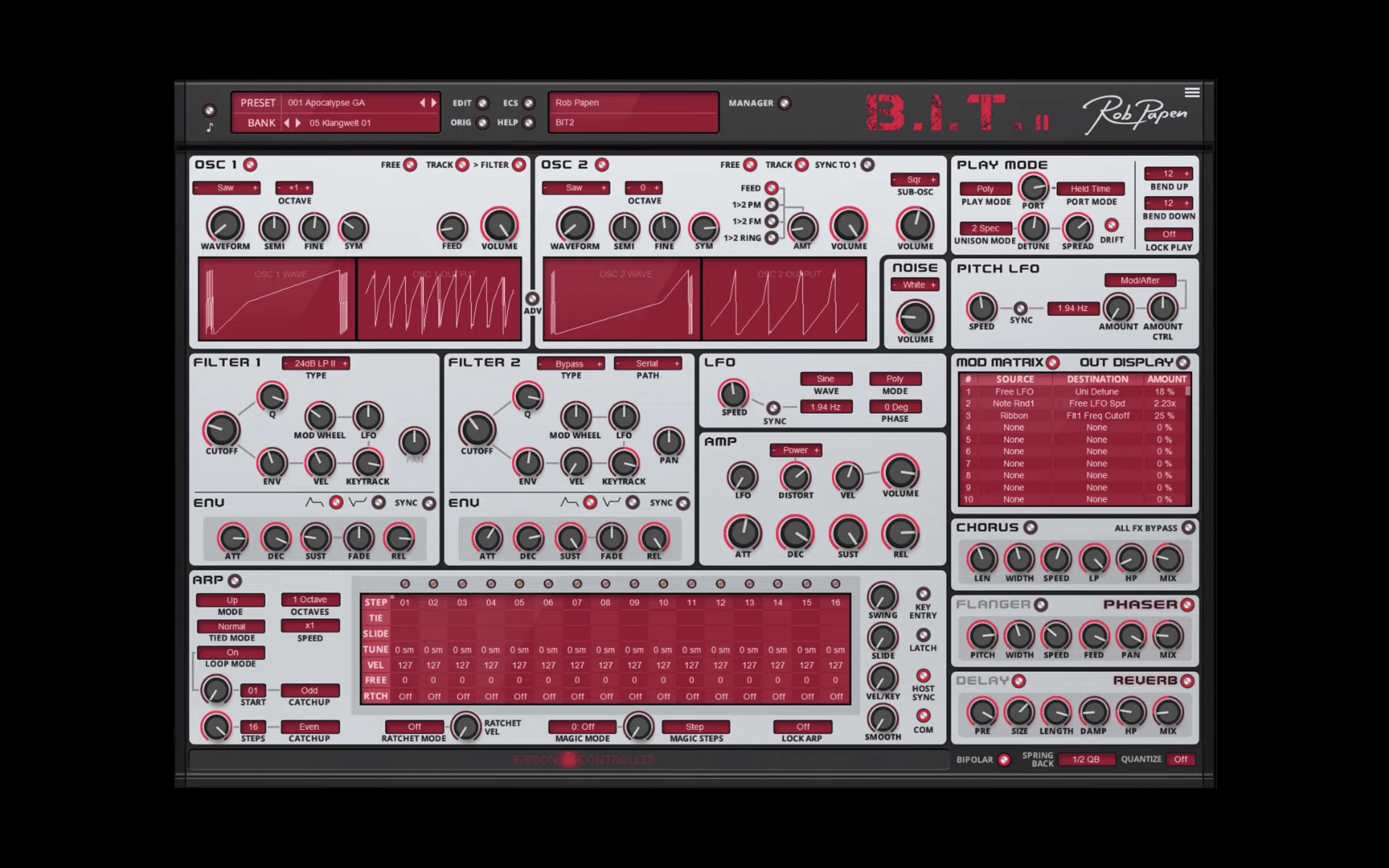 Mit BIT-2 bringt Rob Papen ein umfangreiches Update seines Analog Modeling Synthesizers auf den Markt. Das Instrument bietet erweiterte Oszillatoren, aktualisierte Filter, einen verbesserten Arpeggiator/Sequenzer, zusätzliche Effekte und mehr.