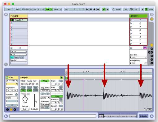 6. Passe das Track delay so an dass jeder Beat der Wellenform genau auf den Schlag kommt. Vielleicht musst du ein paar neue Clips aufnehmen dafür.