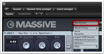 Wir erstellen einen neuen Patch unter „File“ → „New Sound“.