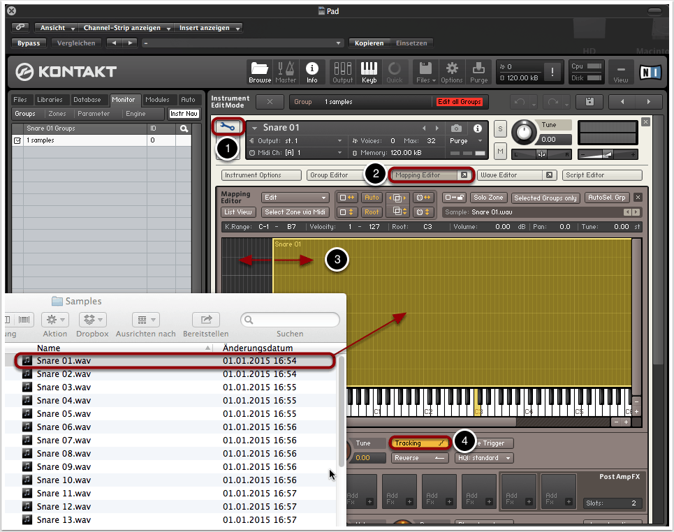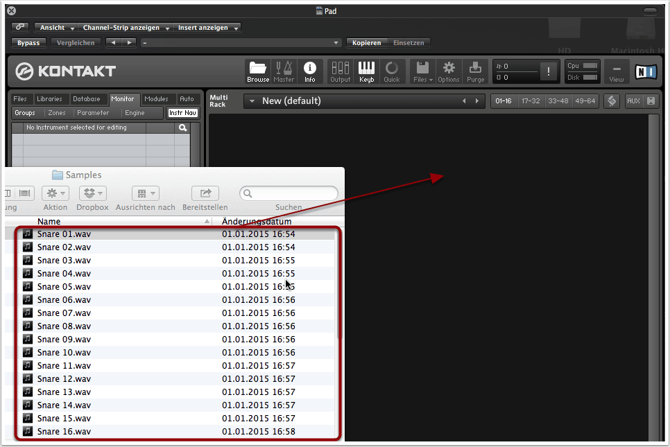 1. Kontakt öffnen und Samples integrieren