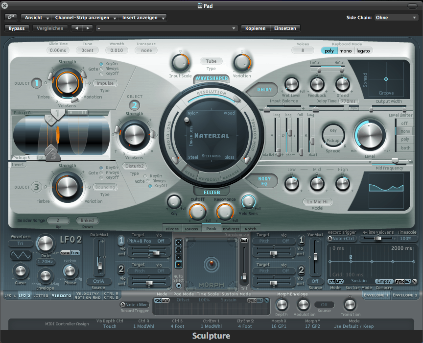 Der Synthesizer “Sculpture” gilt als der Sonderling unter den virtuellen Instrumenten, die in Logic Pro integriert sind. Aufgrund der Komplexität und der nicht einfach zu beherrschenden Bedienoberfläche wird der Synthesizer von vielen Usern umgangen – leider!