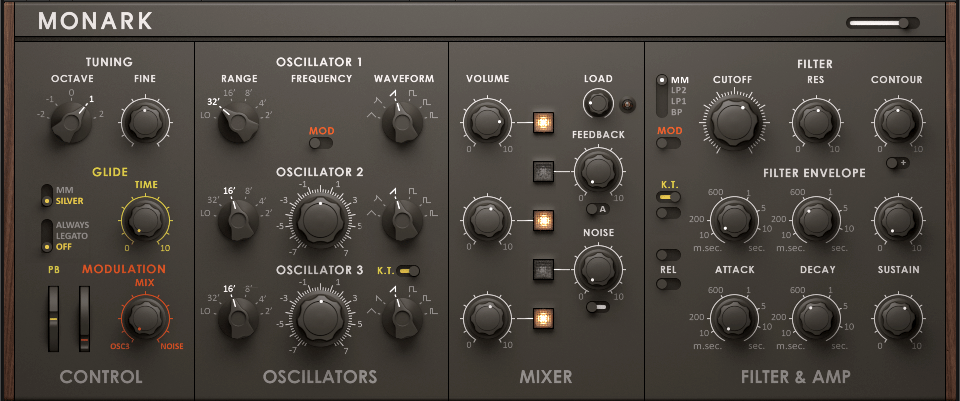 Zugegeben wirkt Monark auf den ersten Blick etwas spärlich und es gibt keine integrierten Effekte wie Reverb, Flanger oder Phaser, keinen Arpeggiator und nur recht begrenzte Modulationsmöglichkeiten. Doch auch die analogen Vorbilder des Monark der 60er und 70er Jahre hatte nicht wirklich mehr zu bieten – und mussten dies auch nicht! Die Sounds, die man mit Monark selbst erzeugen kann, sind vielmehr eine sehr gute Grundlage für weitere Klangbearbeitungen durch externe Effekte und eignen sich wohl nur in Ausnahmen in ihrer unbearbeiteten Rohfassung.
