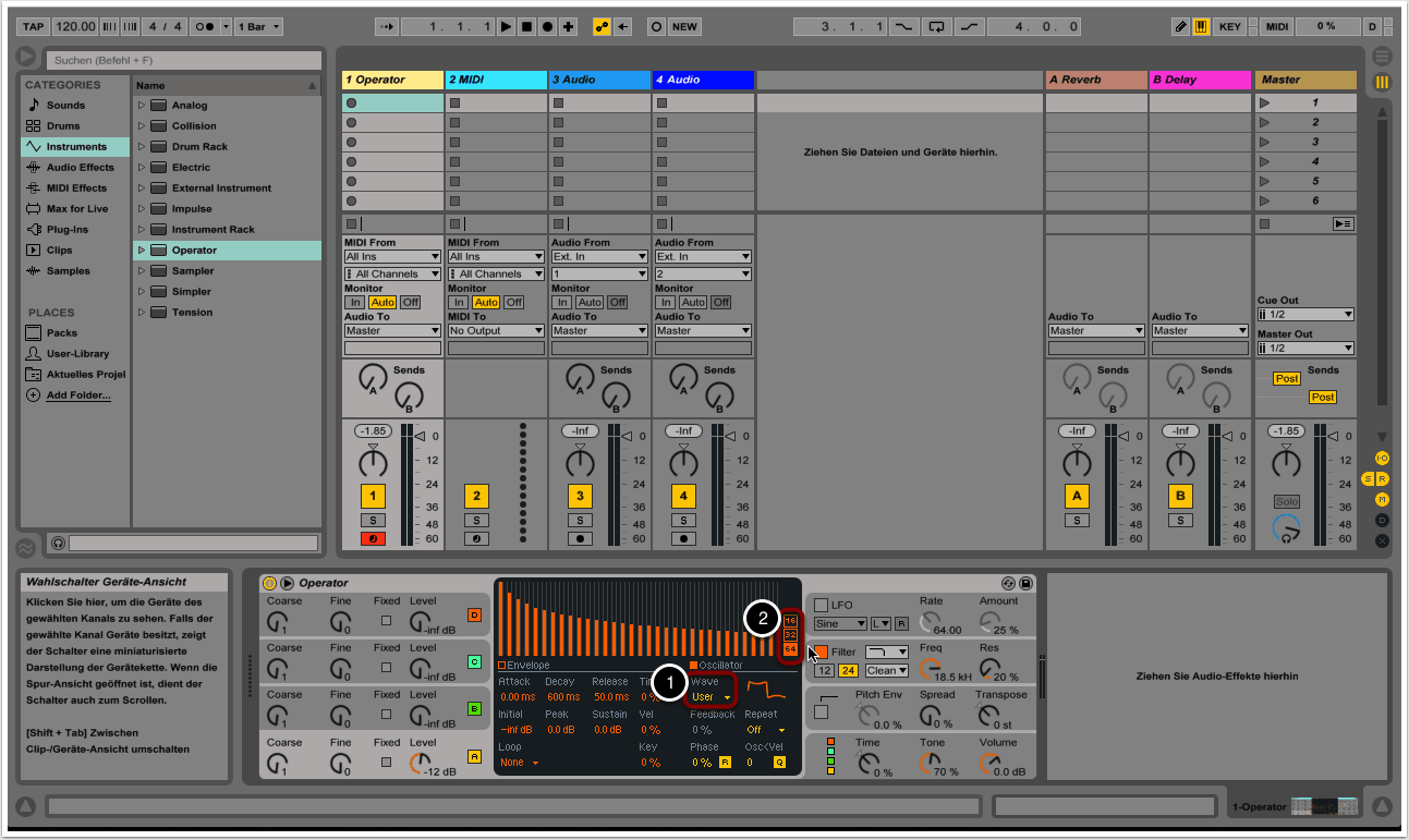 Die Basics der additiven Synthese wollen wir im Anschluss mit Hilfe von Abletons Operator etwas genauer demonstrieren.