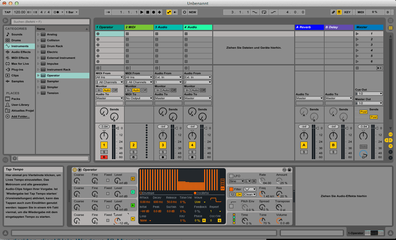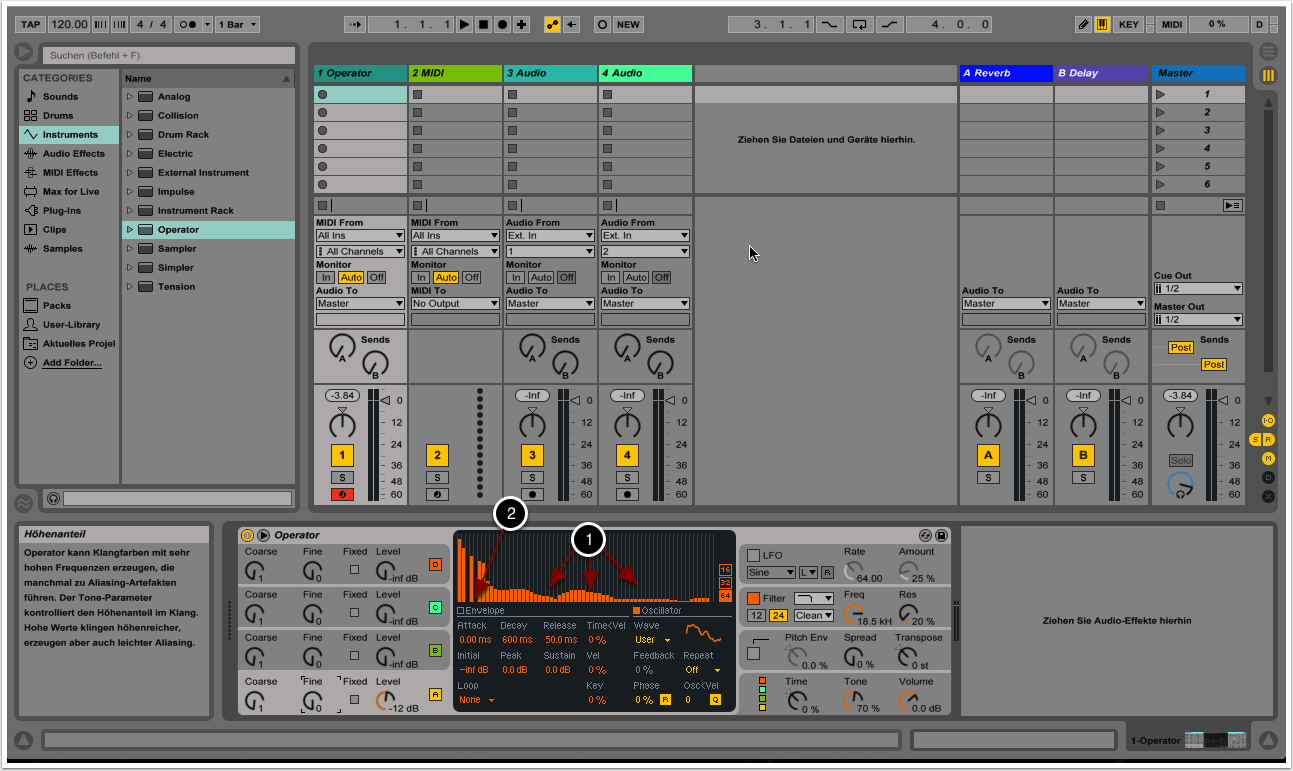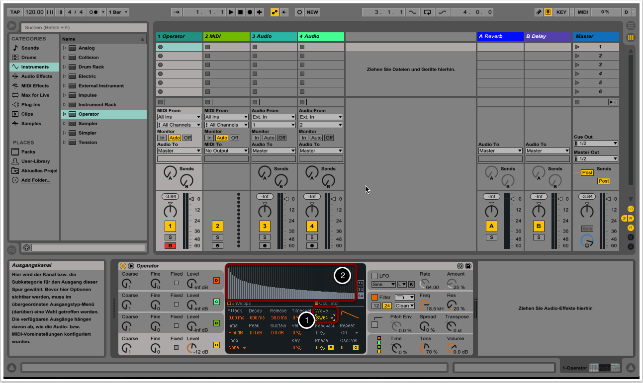 Abletons Operator mag in erster Linie als FM-Synthesizer bekannt sein – was er auch ist. Unter der Haube stecken jedoch auch Module, die auf additiver und subtraktiver Synthese basieren und den Operator in Wirklichkeit zu einem komplexen Hybrid-Instrument mit verschiedenen Syntheseformen machen. Nachdem wir in Tutorial 039 den Operator bereits benutzt haben, um die Funktionsweise von additiver Synthese zu erklären, wollen wir in diesem Tutorial einen groben Einblick in die subtraktive Synthese geben.