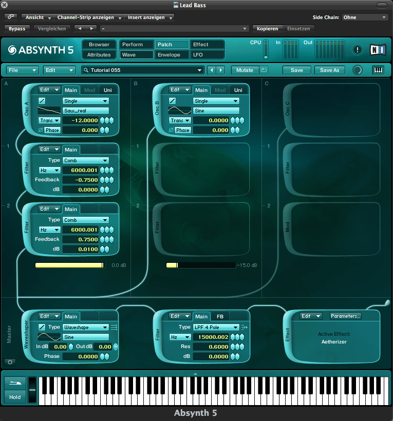 In diesem Tutorial wollen wir einen satten Lead Bass mit Native Instruments Absynth erstellen (Klangbeispiel 01), den wir im darauffolgenden Tutorial 056 mit einer Reihe von Plug-ins weiterverarbeiten werden (Klangbeispiel 02).