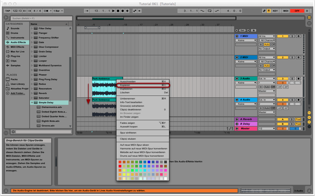 Alternativ können wir wie in Schritt 1 verfahren und das Sample per Drag&Drop erneut in Ableton importieren.