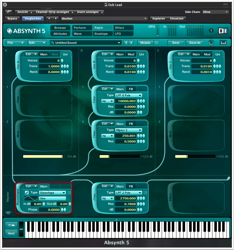 Je weiter wir den jeweiligen MIDI-Controller jetzt aufdrehen, desto lauter und heller klingt unser Dub Lead. Dies gibt uns eine zusätzliche Möglichkeit der Performance und lässt unseren Dub Lead lebendiger wirken. Für unsere Klangbeispiele haben wir mit der rechten Hand die Noten eingespielt, während wir mit der linken Hand das Modulationsrad bedient haben.