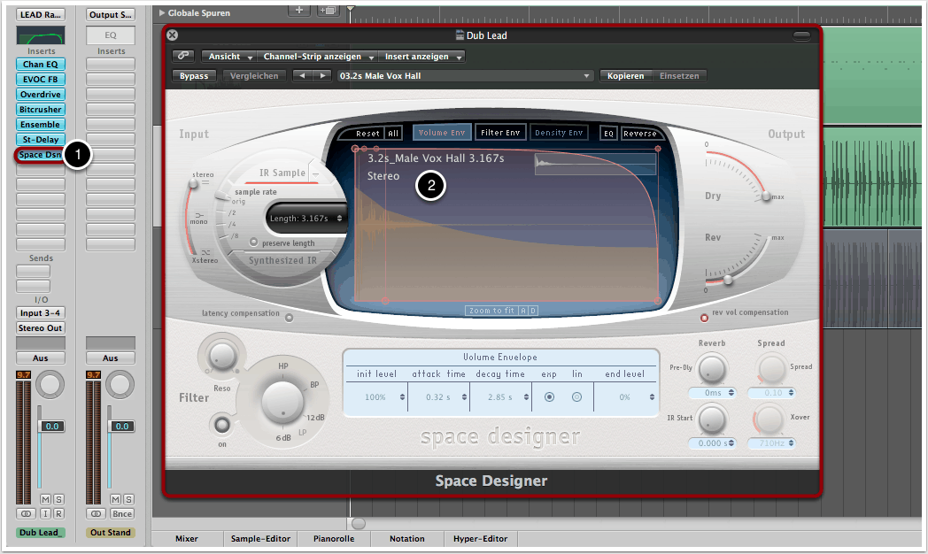 Als Nachhall-Effekt entscheiden wir uns für “Space Designer” (1).