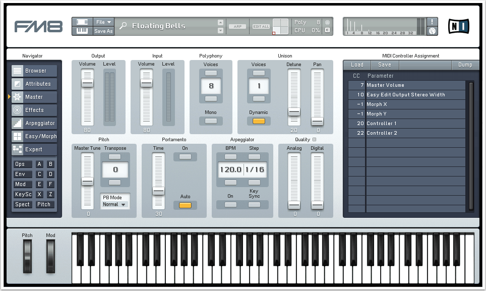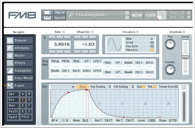In diesem Tutorial wollen wir einen epischen Pad-Sound mit Native Instruments FM8 erstellen, den wir in Tutorial 078 weiter processen werden. Als Vorlage diente das Library-Preset “Floating Bells”, welches wir für unseren Patch modifiziert haben. Klangbeispiel 1 entspricht der unbearbeiteten Version des FM8-Patches und Klangbeispiel 2 der überarbeiteten, mit Effekten angereicherten Fassung.