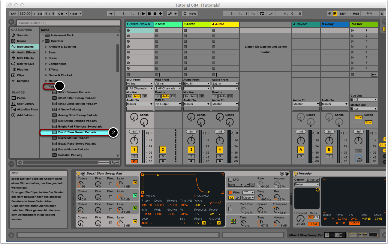 Wir knüpfen direkt an Tutorial 083 an und verwenden die dort erstellte Live-Session sowie den Operator-Patch als Ausgangsbasis.