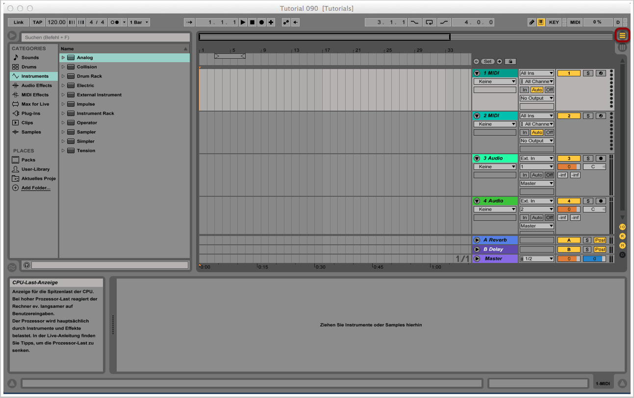 Wir erstellen in Ableton Live ein neues Projekt und wechseln zur Arrangement-Ansicht.