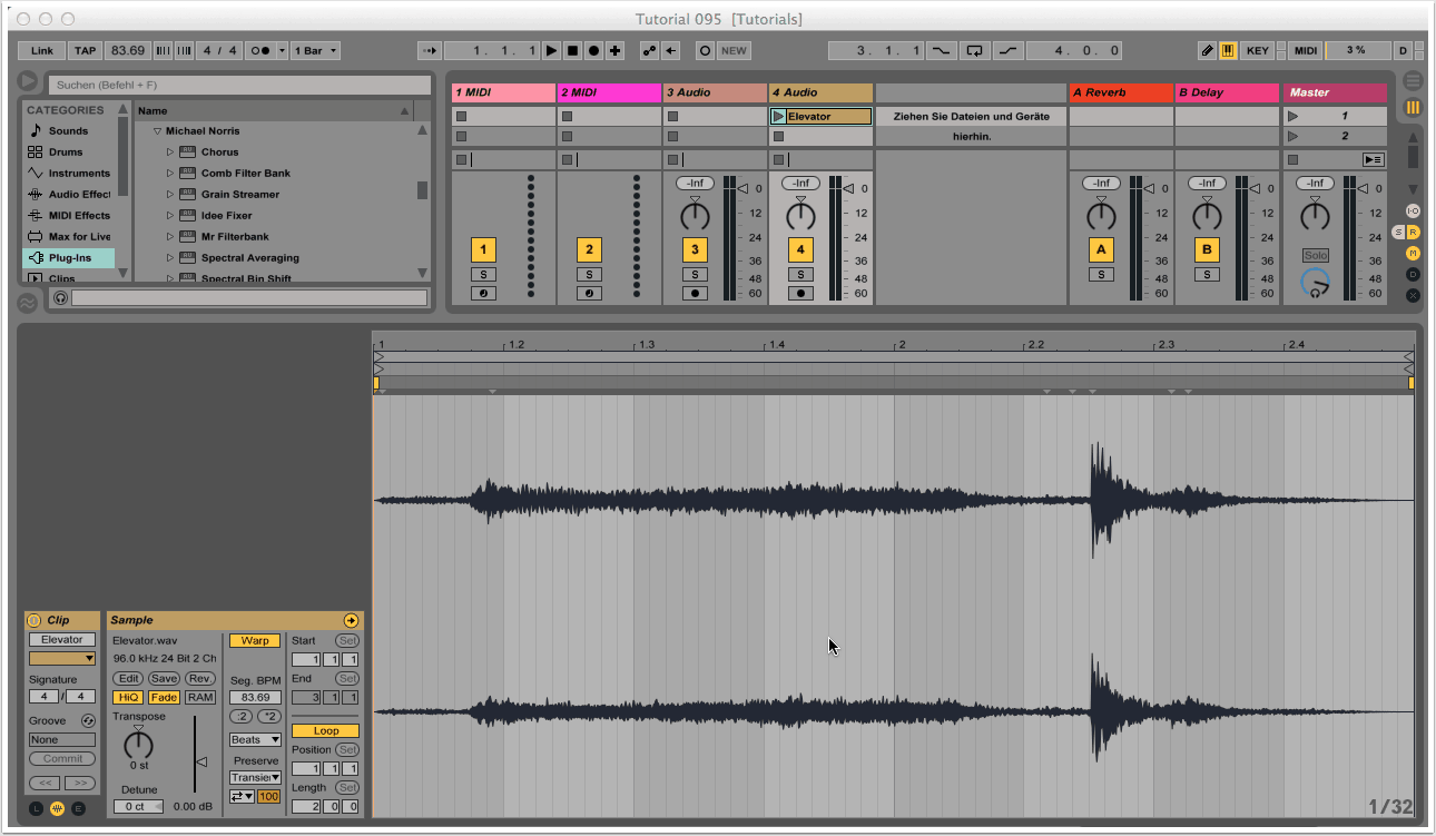 Für unsere Klangbeispiele haben wir als Quellsample die Aufnahme eines Aufzuges verwendet und daraus einen Loop erstellt.
