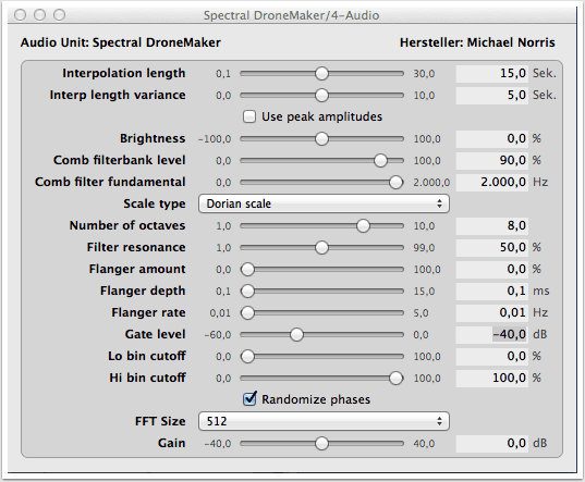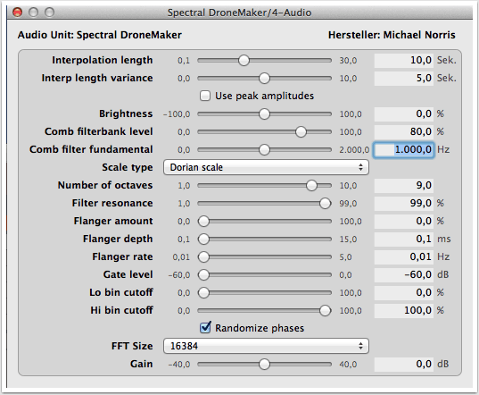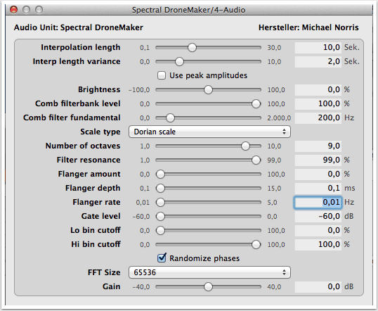 Nun lautet die Devise: Ausprobieren! Im Gegensatz zu vielen klassischen Plug-ins, sind die unterschiedlichen Parameter des Drone Makers nicht selbsterklärend und die resultierenden Klänge beim Herumschrauben nicht immer abzusehen.
