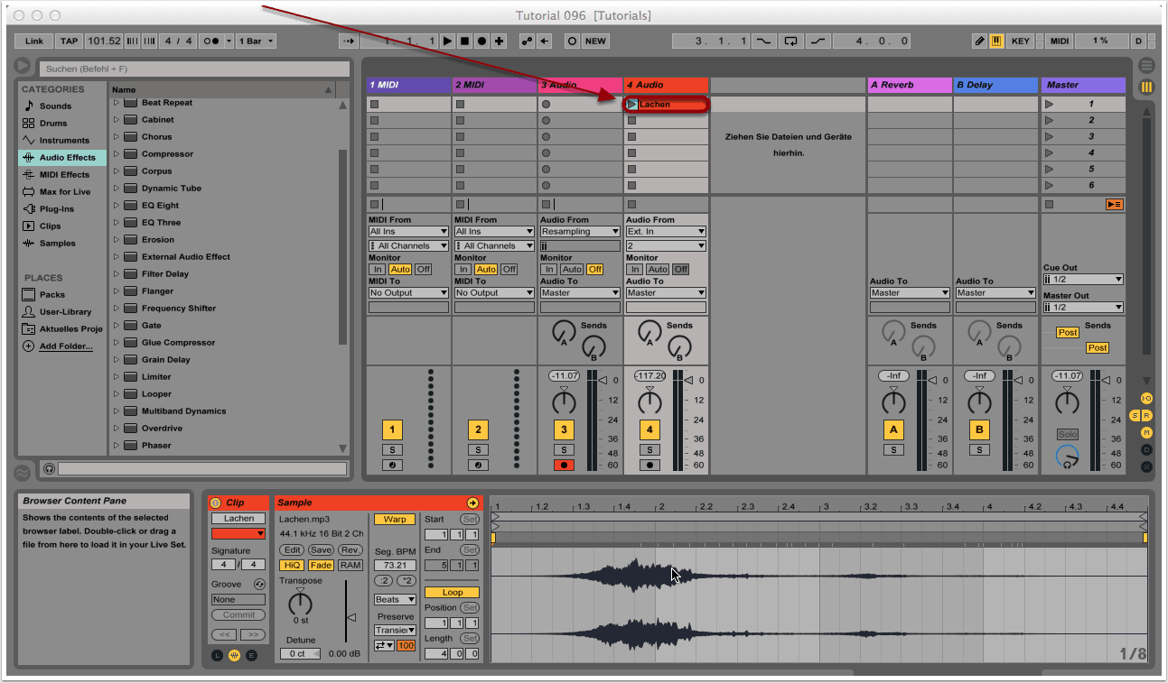 Das Ausgangsfile ziehen wir per Drag&Drop in eine leere Audiospur von Ableton Live.
