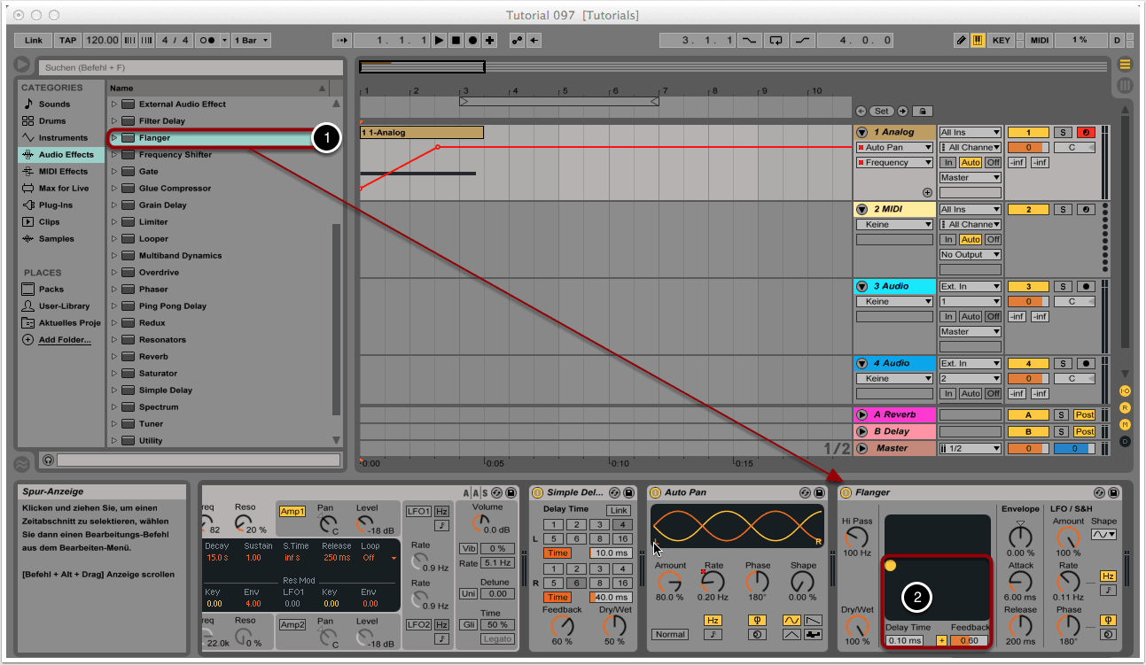 Als nächsten Effekt laden wir “Auto Pan” (1).