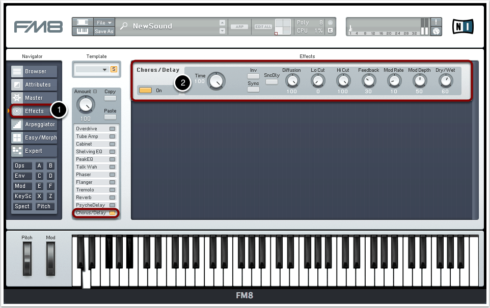 Abschließend wollen wir noch einen Effekt hinzufügen: Chorus/Delay.