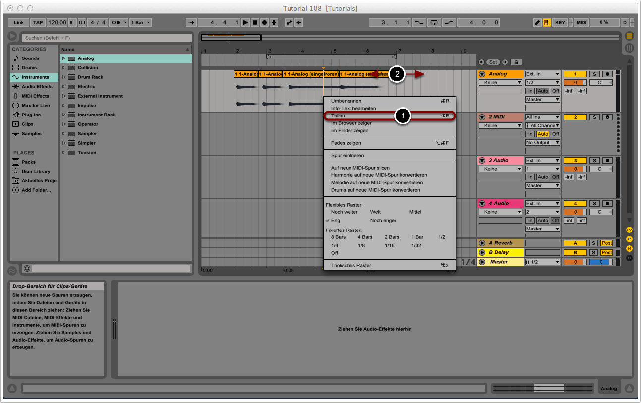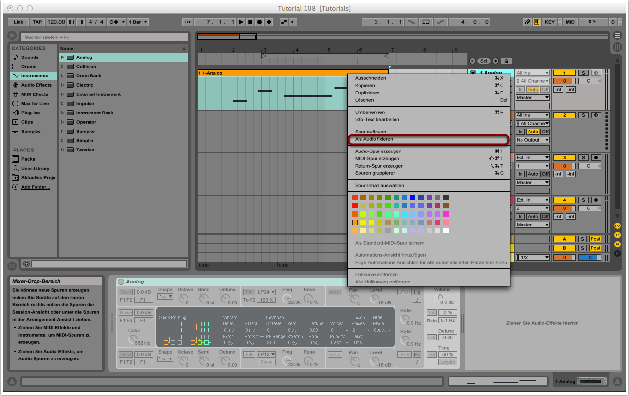 In diesem Tutorial wollen wir euch den einfachsten und schnellsten Weg zeigen, wie man mit Ableton Live MIDI-Daten in Audio umwandeln kann. Wir benutzen hierzu die Befehle “Spur einfrieren”, “Als Audio fixieren” und “Konsolidieren”.