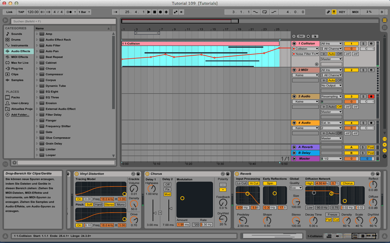 Den mit Collision erstellen Klang wollen wir durch eine Reihe von Effekten erweitern.