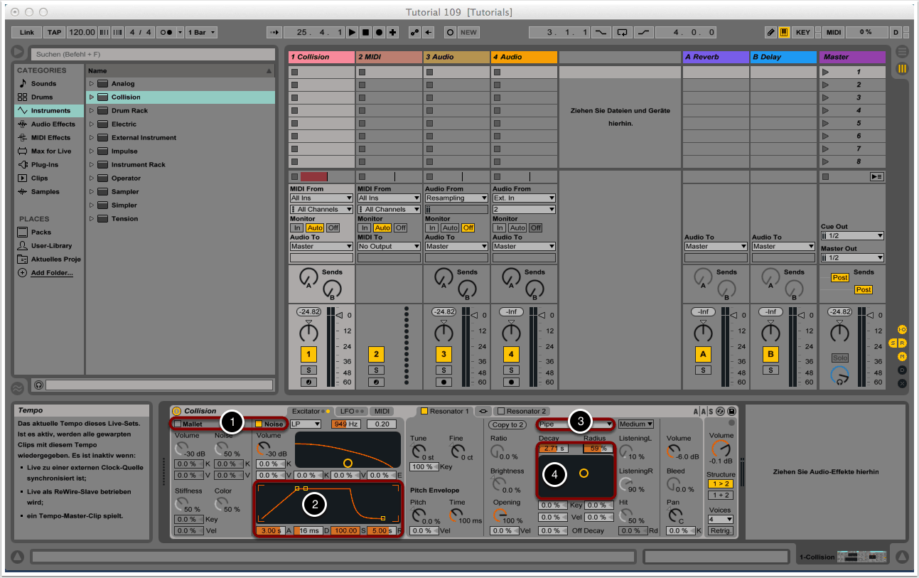 In diesem Tutorial wollen wir mit Ableton Lives Physical-Modeling-Instrument Collision einen atmosphärischen Pad-Sound erstellen.