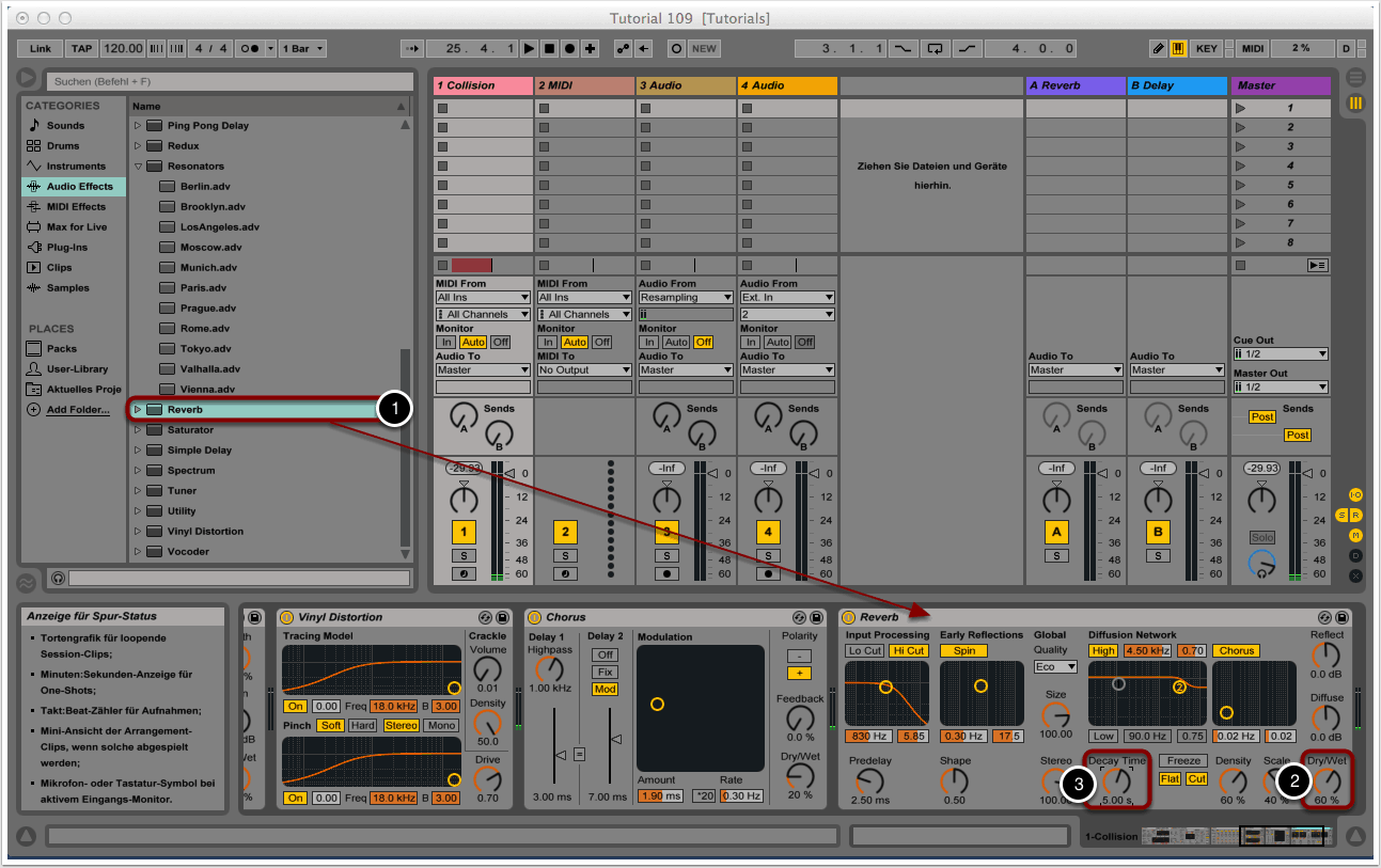Als letzten Effekt wählen wir “Reverb” aus (1).
