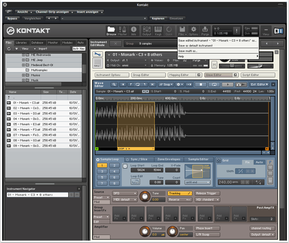 Das erstellte Kontakt-Instrument können wir über “Files” -> “Save multi as…” speichern.