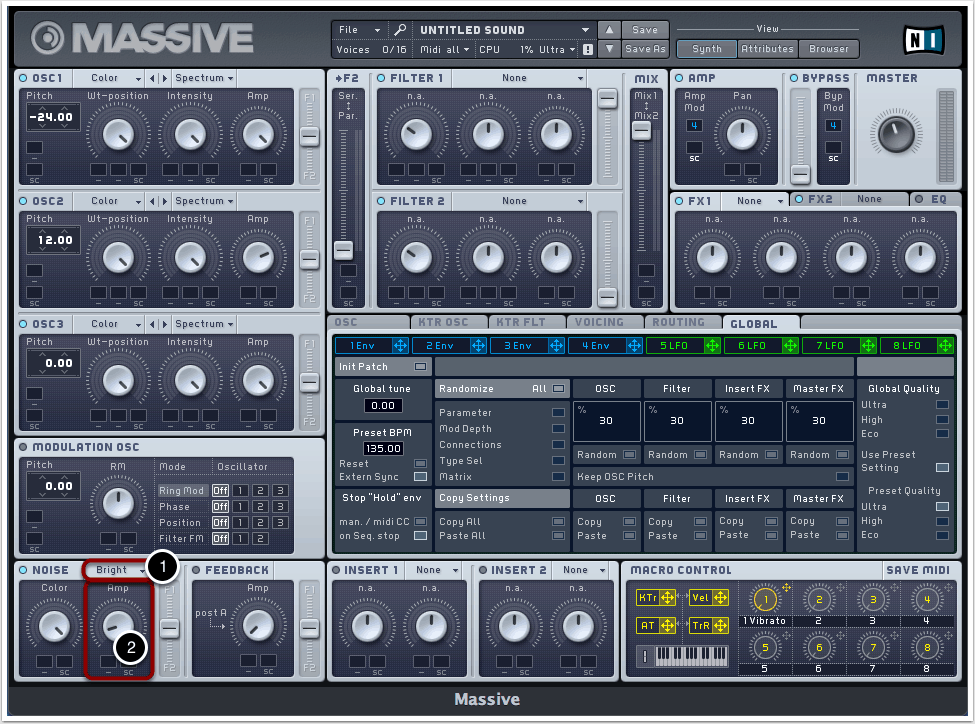 Als Noise-Signal wählen wir “Bright” aus (1).