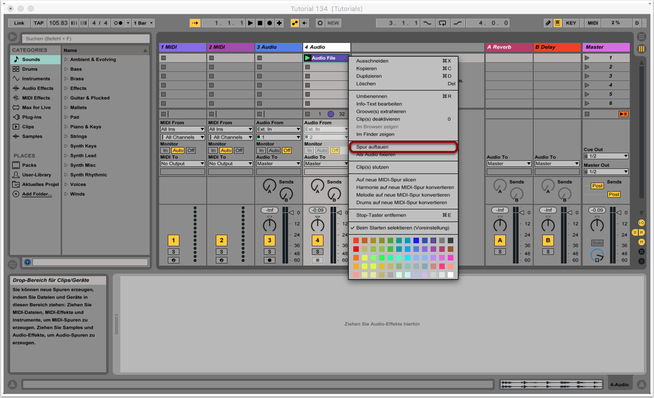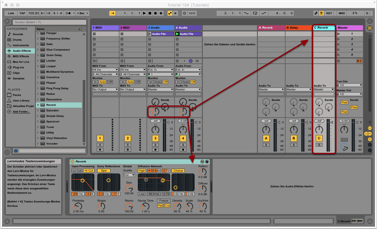 Mit Hilfe von Return Tracks können mehrere Spuren mit den gleichen Plug-ins bzw. den gleichen Effekten bearbeitet werden. In SOS Tutorial 104 erklären wir euch, wie man mit Ableton Live Gruppen und Return Tracks erzeugt.