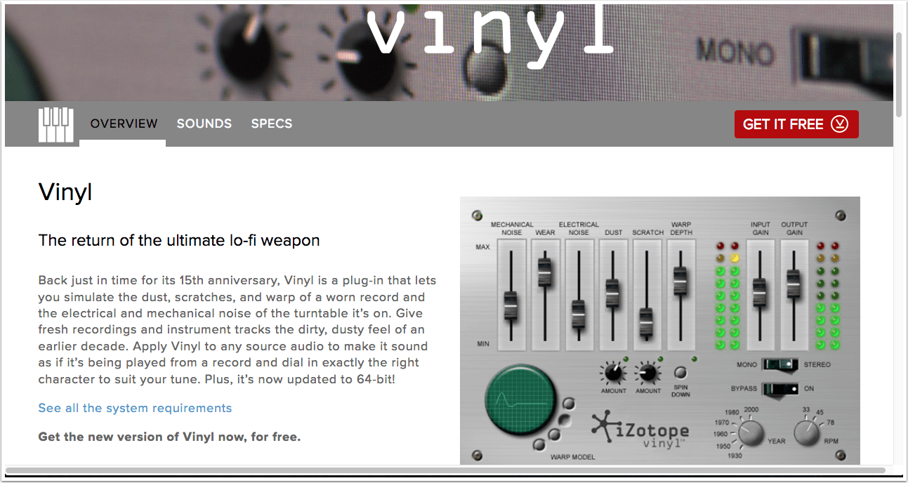 Vinyl kann auf der Homepage von iZotope kostenlos heruntergeladen werden: