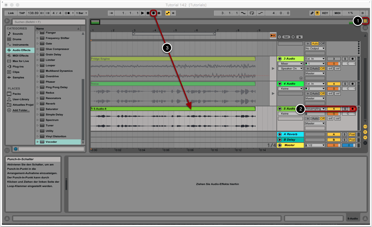 Über den Main-Record-Button können wir nun das Output-Signal des Vocoders und Performances aufzeichen (3).