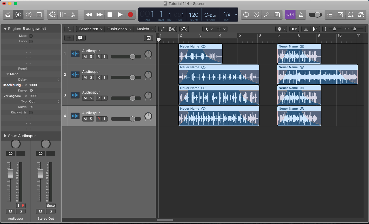 In diesem Tutorial wollen wir euch einige Tipps vorstellen, mit denen in Logic Pro X mehrere Regionen gleichzeitig bearbeitet werden können. Neben größtenteils bekannten Optionen wie multiples Looping oder Schneiden wollen wir euch zeigen, wie man multiple Fades und Pitch-Shifts erzeugen und mehrere Regionen gleichzeitig umbenennen kann.