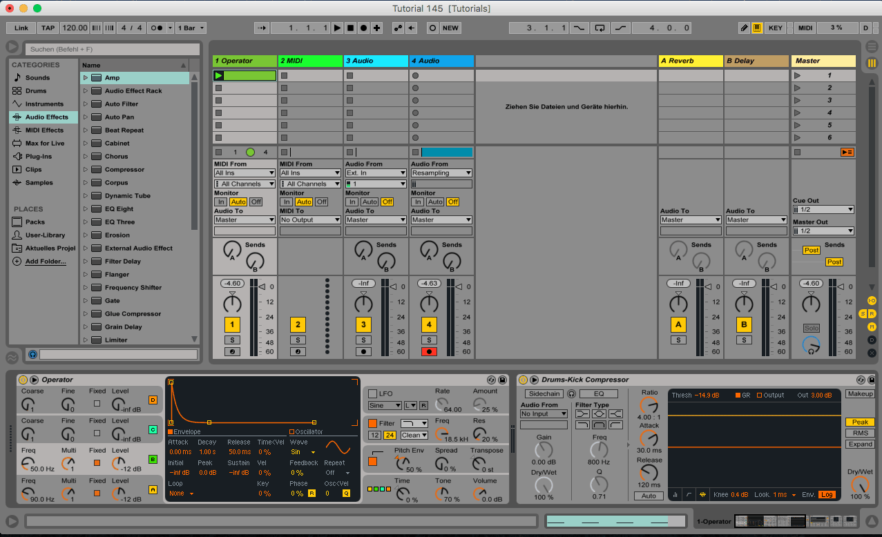 In diesem Tutorial wollen wir mit dem Operator eine Reihe synthetischer Kick Drums erstellen, die wir anschließend mit den Distortion-Tools von Ableton Live processen werden.