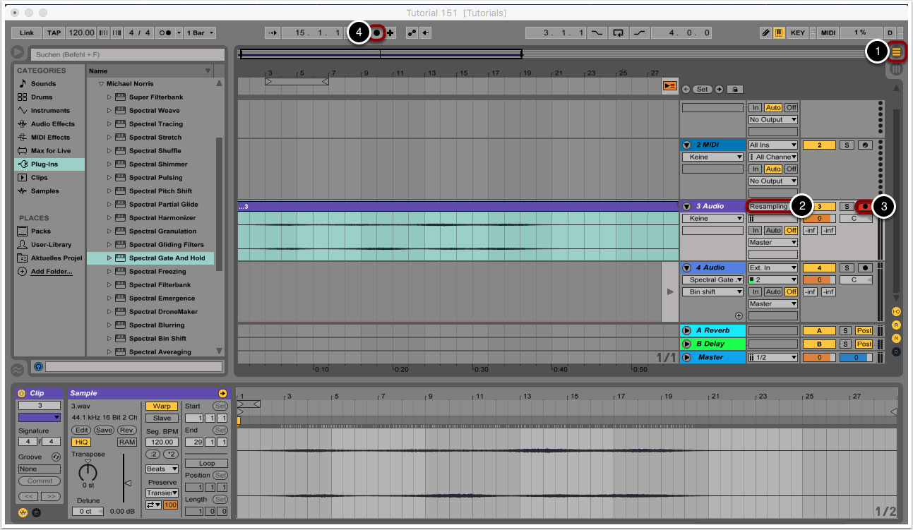 Nachdem wir uns für ein Quellsample entschieden haben, laden wir dieses in eine DAW unserer Wahl, in unserem Fall Ableton Live. (1).