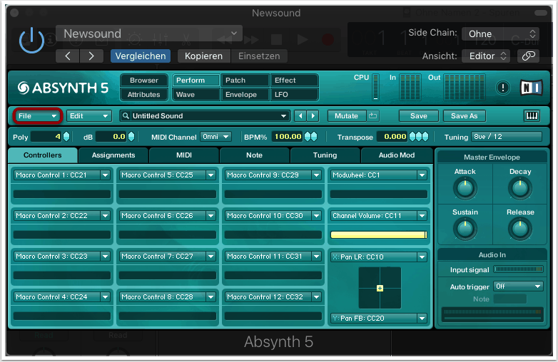 Wir begeben uns zur Envelope-Sektion von Absynth (1).