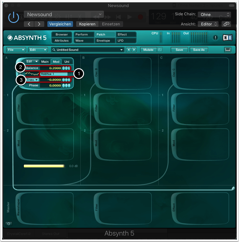 Dieses Signal soll jedoch weniger stark sein. Wir reduzieren daher die Balance auf den Wert 0.2 (2).