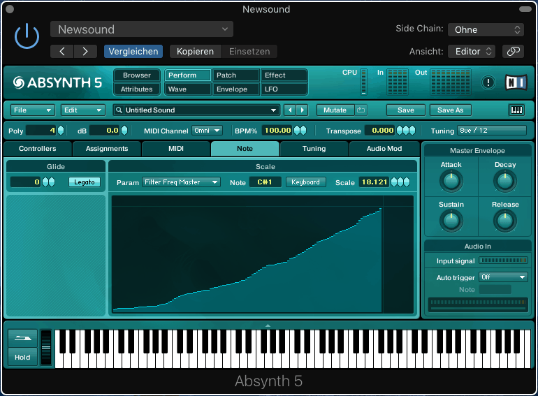 In diesem Tutorial wollen wir euch ein nützliches Feature von Native Instruments Absynth vorstellen: Key Scaling und Note Mapping. Mit dieser Funktion können beispielsweise einzelne Parameter dynamisch skaliert und ein Oszillator einem einzelnen MIDI-Notenwert oder einem Notenbereich zugeordnet werden.