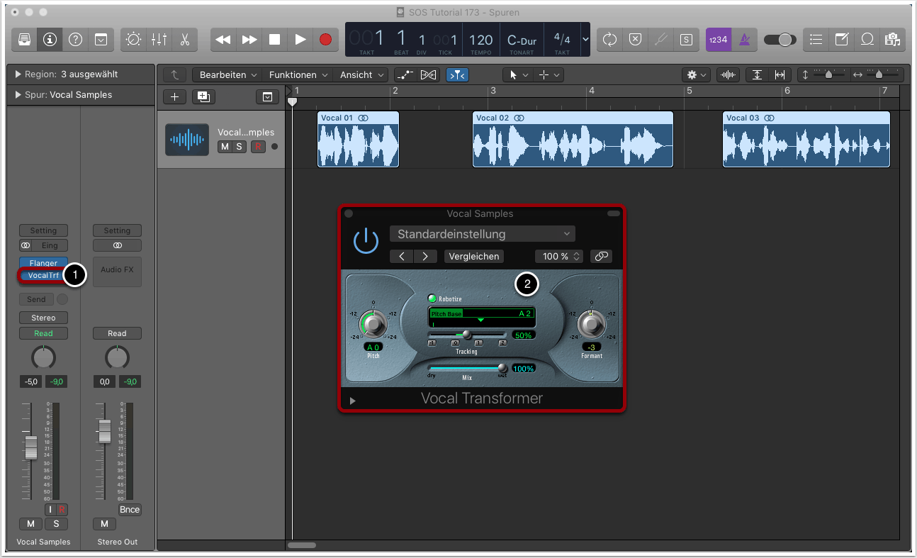 In diesem Tutorial wollen wir Vocal Samples durch eine Reihe verschiedener Effekte von Logic Pro X verändern. Im Mittelpunkt steht dabei der Vocal Transformer.