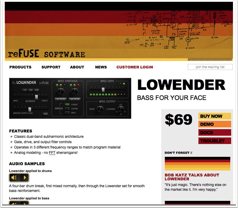 Der Hersteller stellt auch eine Demo-Version zur Verfügung, mit dem das Tool vor dem Kauf getestet werden kann. Auf der Homepage sind außerdem weitere Informationen zum Produkt erhältlich und weitere Klangbeispiele. Die Vollversion von Lowender kostet 69USD.