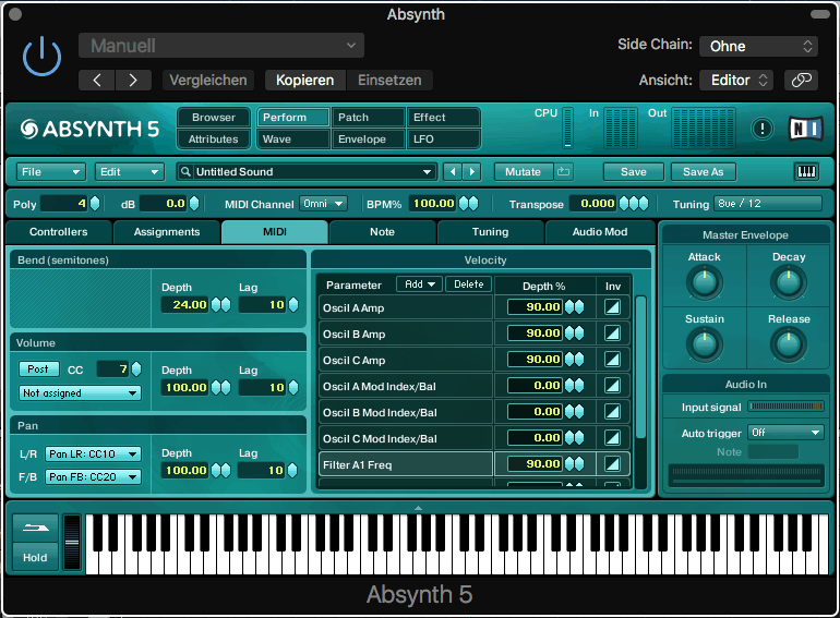 In diesem Tutorial zeigen wir euch, wie man mit Absynth von Native Instruments beliebige Parameter durch Velocity steuern kann.