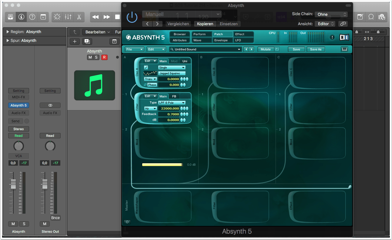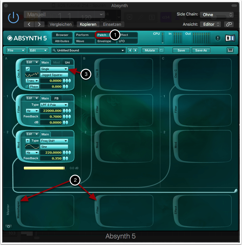 Wir begeben uns zum Patch-Fenster von Absynth (1).